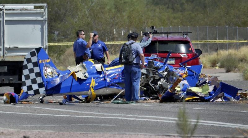 Read more1 / 6 The wreckage of a small plane sits in an intersection Monday, Aug. 20, 2018, in Phoenix. The