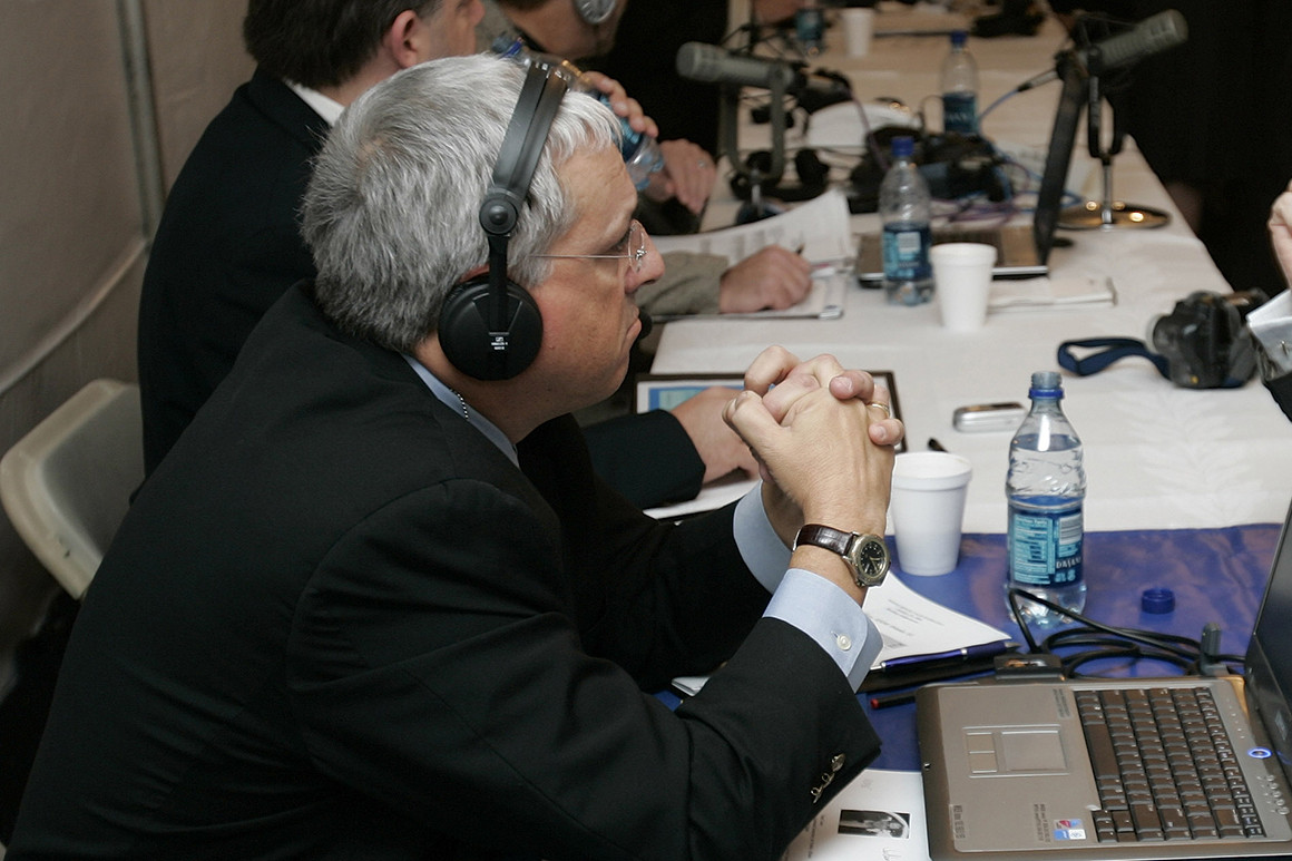 Radio talk show host Marc Bernier is pictured in a tent at the White House in 2006. | Ron Edmonds/AP Photo