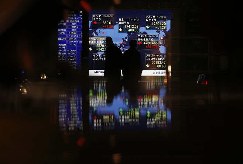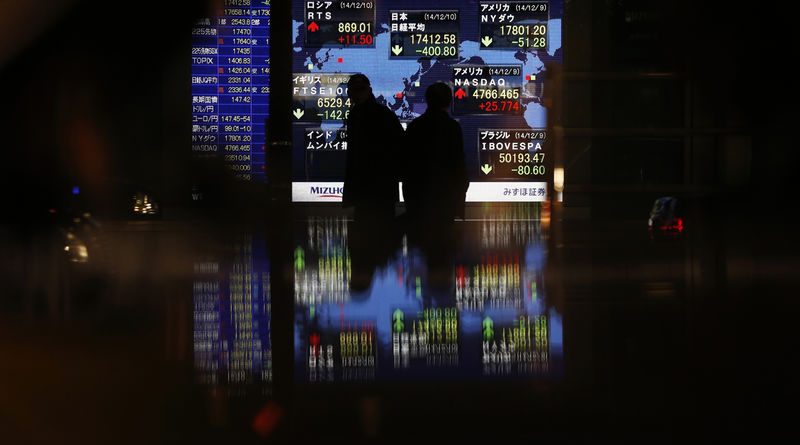 © Reuters. FILE PHOTO: Passersby are silhouetted in front of an electronic board displaying Japan's Nikkei average and various countries' stock price index outside a brokerage in Tokyo© Reuters. FILE PHOTO: Passersby are silhouetted in front of an electronic board displaying Japan’s Nikkei average and various countries’ stock price index outside a brokerage in Tokyo