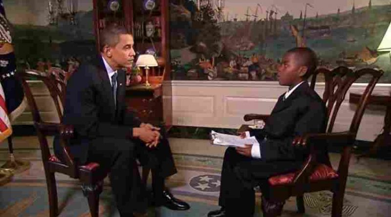 At 11 years old, Damon Weaver interviewed then-President Obama in the Diplomatic Room. Weaver focused his interview on education in the U.S., and included a suggestion that school lunches consist of French fries and mangoes every day.