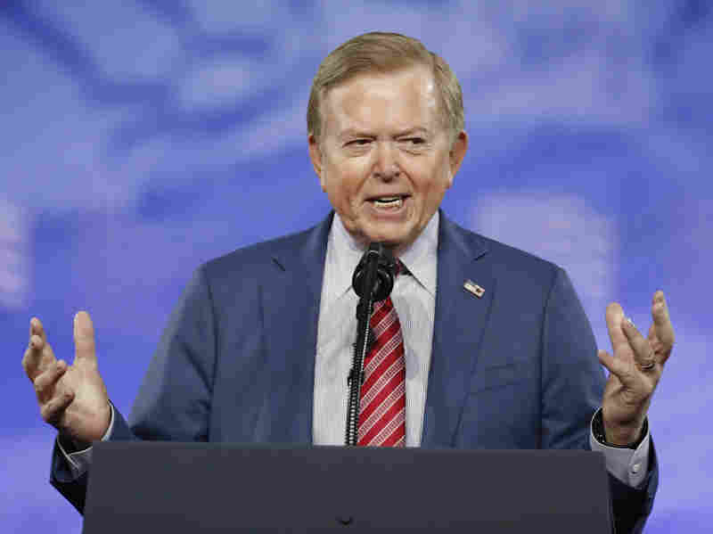 Lou Dobbs on Lou Dobbs Tonight in 2017. After over a decade with Fox, his show was canceled Friday. Alex Brandon/AP hide caption
