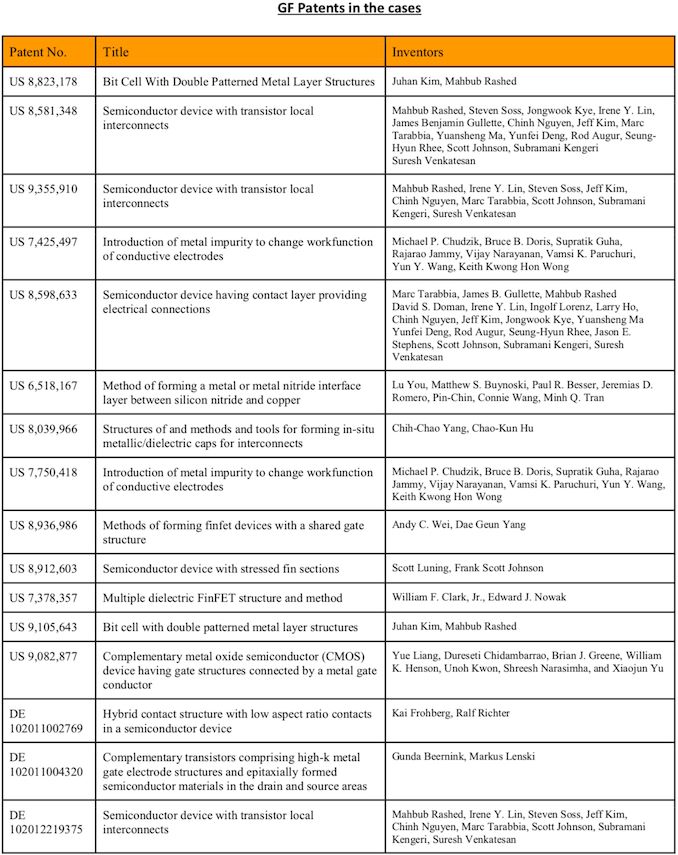 | GlobalFoundries vs. TSMC et al | ||||