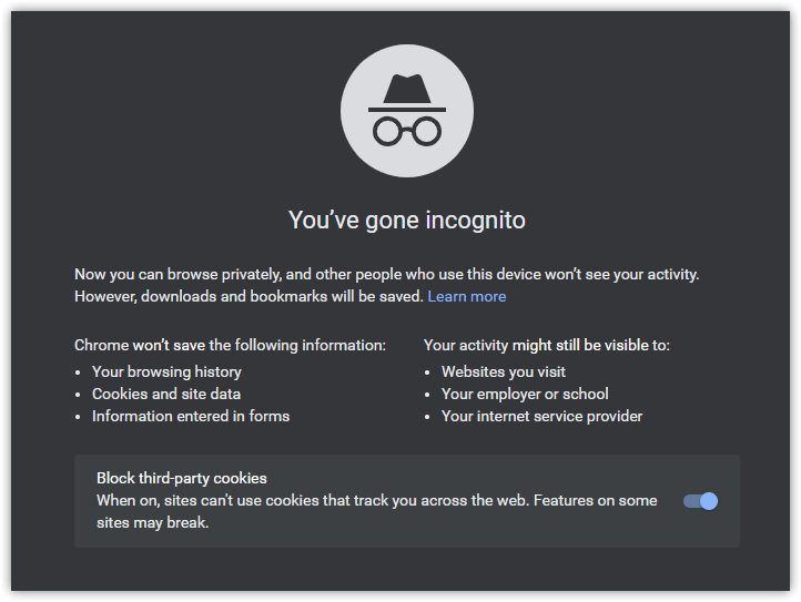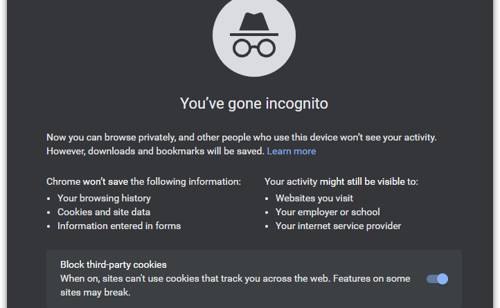 Backing up Google’s response, Chrome does indeed give clear warning of this to users launching a new incognito window, as pictured below. It notifies users that Chrome won’t save their browsing information or data, but that a user’s activity may still be visible to websites, ISPs, and network managers such as a school or employer. This notice appears on Chrome for Windows, macOS, Android, iOS, and Linux — every platform that supports the browser.