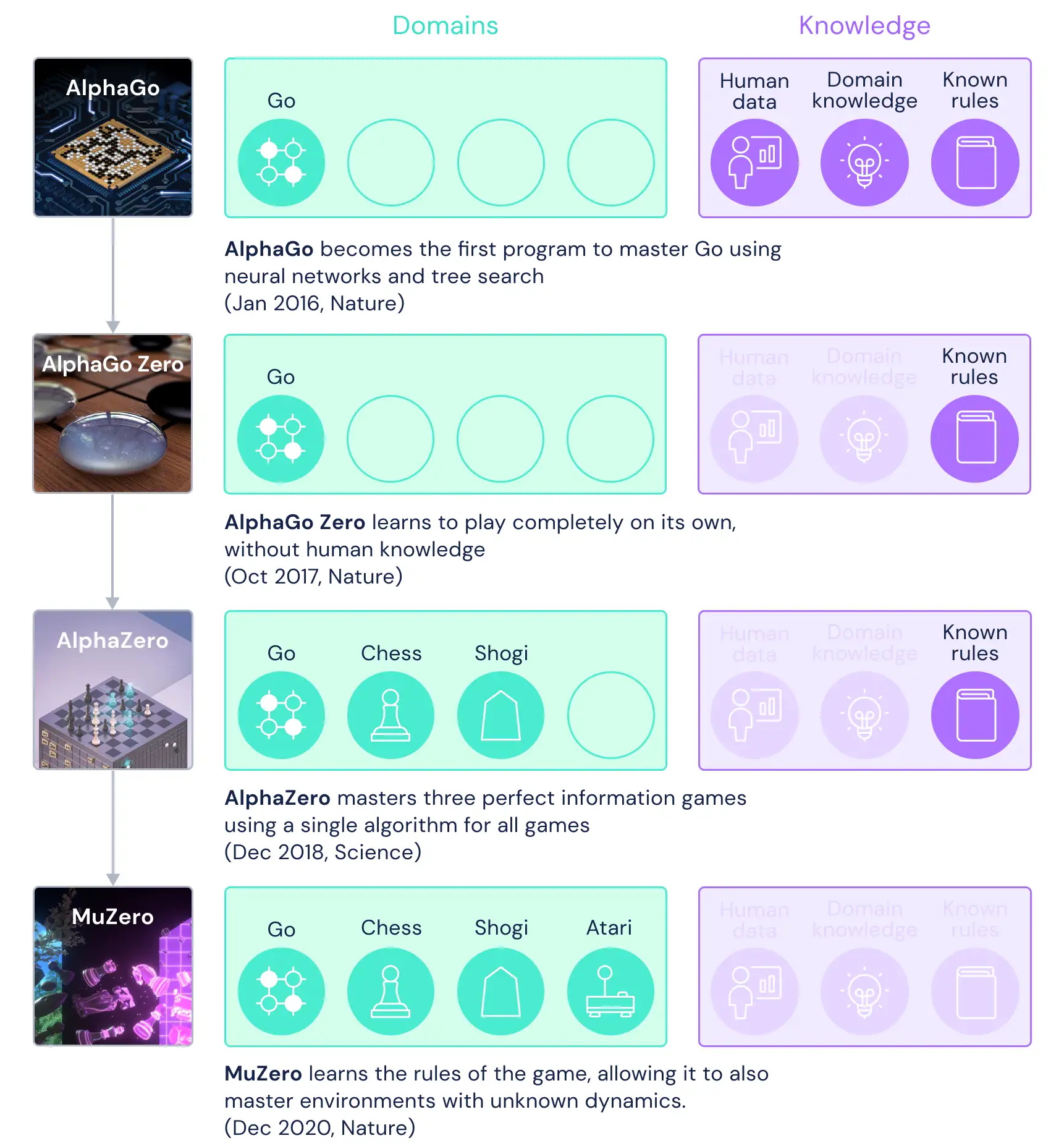 You may remember Agent57, another DeepMind creation that excelled at a set of 57 Atari games. MuZero takes the best of that AI and combines it with the best of AlphaZero. MuZero differs from the former in that it does not model the entire game environment, but focuses on the parts that affect its decision-making, and from the latter in that it bases its model of the rules purely on its own experimentation and firsthand knowledge.