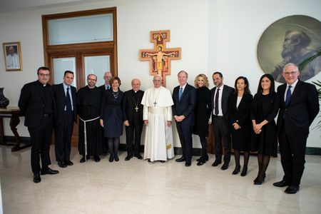 Microsoft President and Chief Legal Officer Brad Smith meets with Pope Francis at Saint Martha’s House at the Vatican