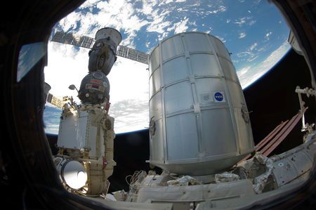 FILE PHOTO: The newly-attached Permanent Multipurpose Module (PMM) and a docked Russian Soyuz spacecraft are featured in this photo provided by NASA and taken March 1, 2011. REUTERS/NASA