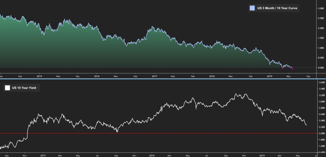Obviously, the 3-month/10-year inversion feeds into the “imminent recession” narrative, and Bloomberg ran an entire feature article on Wednesday about the prospect of 10-year yields sinking below 2%.