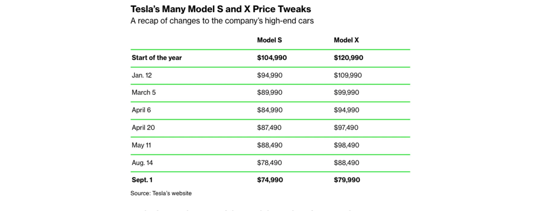 Tesla dropped prices of the Model S and X after unveiling a refreshed version of the Model 3 with a sleeker front end, more battery range and a new rear touch screen.