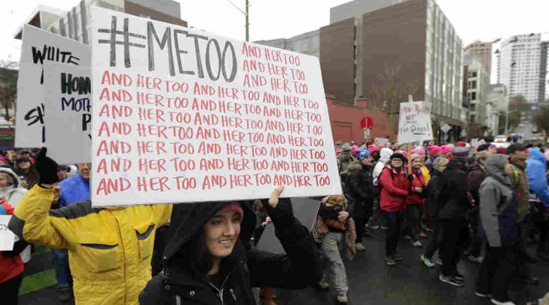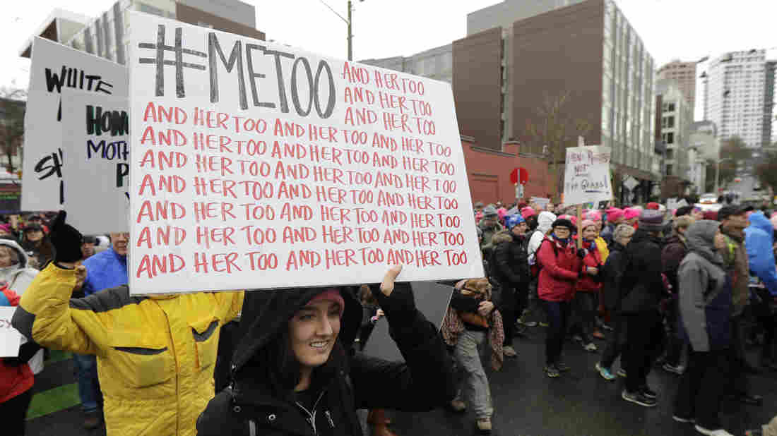 Marchers protest sexual harassment in January 2018 in Seattle. Ted S. Warren/AP hide caption