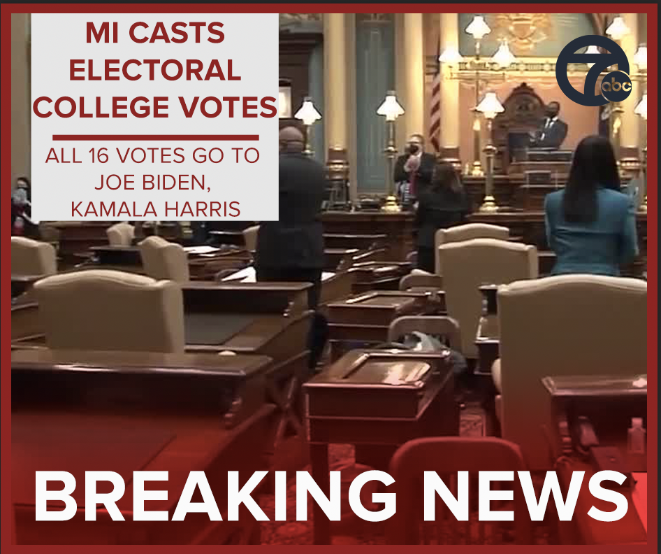 Biden, who won Michigan by more than 150,000 votes, got all 16 electoral votes. Each state cast its Electoral College votes on Monday.