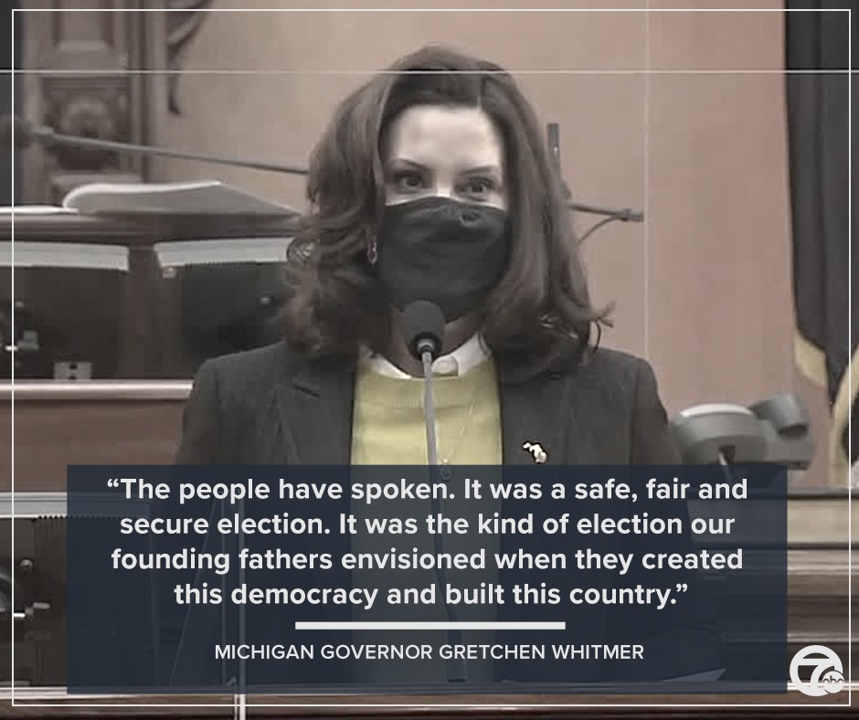 Michigan Governor Gretchen Whitmer addressed the electors before the vote.